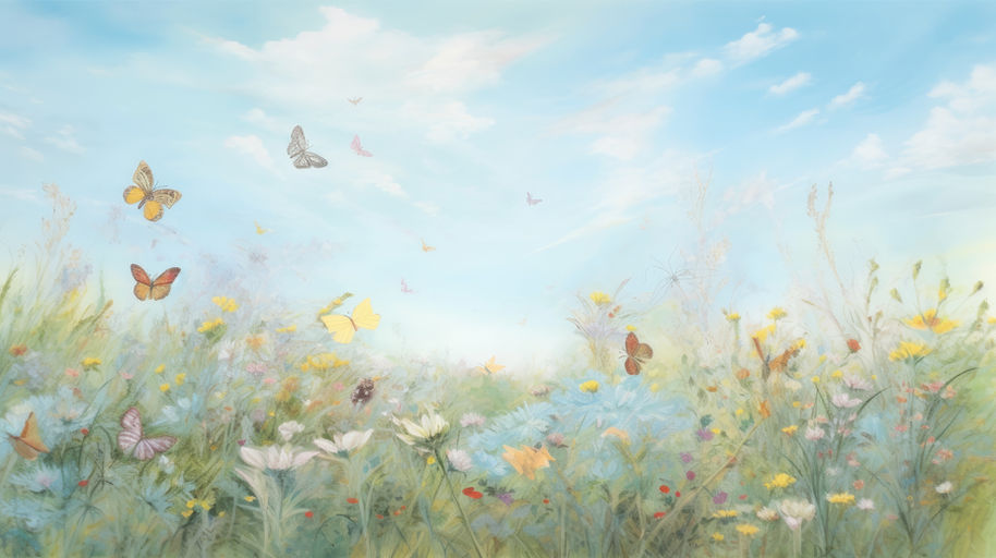 Discover the enchanting world of our 'Butterflies' frescoes; a celebration of life, color, and nature's quiet resilience. The fresco presents a meticulously detailed tableau of a sun-drenched meadow teeming with an array of vibrant butterflies. Each butterfly is distinct, their iridescent wings catching the light as they flit between the wildflowers that punctuate the verdant landscape. The wide-open, pastel-hued sky lends an air of infinite possibility and freedom. Using detailed brushwork and a color palette brimming with warm greens, vivid reds, and serene purples, the fresco creates a tranquil environment, alive with the rhythm of nature. The soft sunlight infuses the scene with a sense of warmth and gentleness, adding to the restorative ambiance of the fresco.