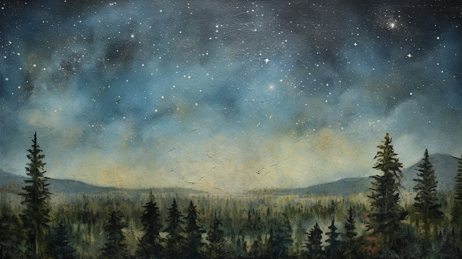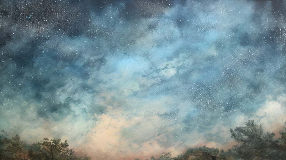 'Night Sky' is a poignant exploration of the celestial expanse where art and science blend together in a captivating fresco. This magnificent art piece portrays the infinite canvas of the universe, filled with sparkling stars, ethereal nebulae, and the glowing arc of the Milky Way. The dominant colors are variations of blues and purples, set against black, capturing the depth and tranquility of the night sky.